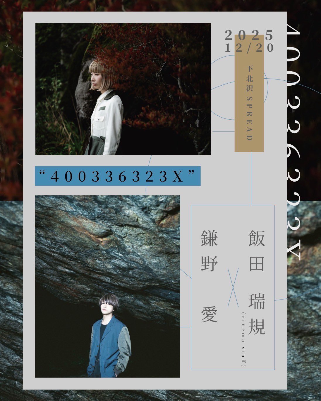 【イベント名】 “400336323X” 【会場】 下北沢SPREAD 【時間】 OPEN 11:30 / START 12:00 【出演】 鎌野 愛 飯田 瑞規(cinema staff) 【チケット】 前売り:4,000円(D代別) <一次先行(抽選)> Ticket Dive:https://ticketdive.com/event/400336323x 受付期間:10/2... MORE