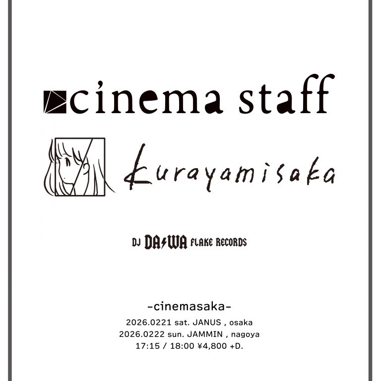 【イベント名】 cinemasaka 【会場】 Music Club JANUS 【時間】 OPEN 17:15 / START 18:00 【出演】 cinema staff kurayamisaka [DJ] DAWA (FLAKE RECORDS) 【2025.11.29(Sat)10時発売開始】 前売り:4,800円(D代別) ぴあ:https://w.pia.jp/t/cinemas... MORE